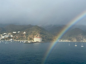 Then, after working out in the ship’s gym one morning, I noticed that we were coming ashore to Santa Catalina Island. The shoulder critic had me anticipating that inclement weather was going to ruin our time there, but look what I saw upon stopping on the ship’s deck outside the gym: